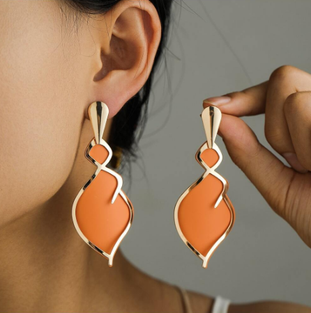 Crafted with attention to detail, these earrings feature a unique double-layer design reminiscent of delicate water droplets. The vibrant orange hue adds a playful touch to your look, while the layered structure adds depth and dimension.